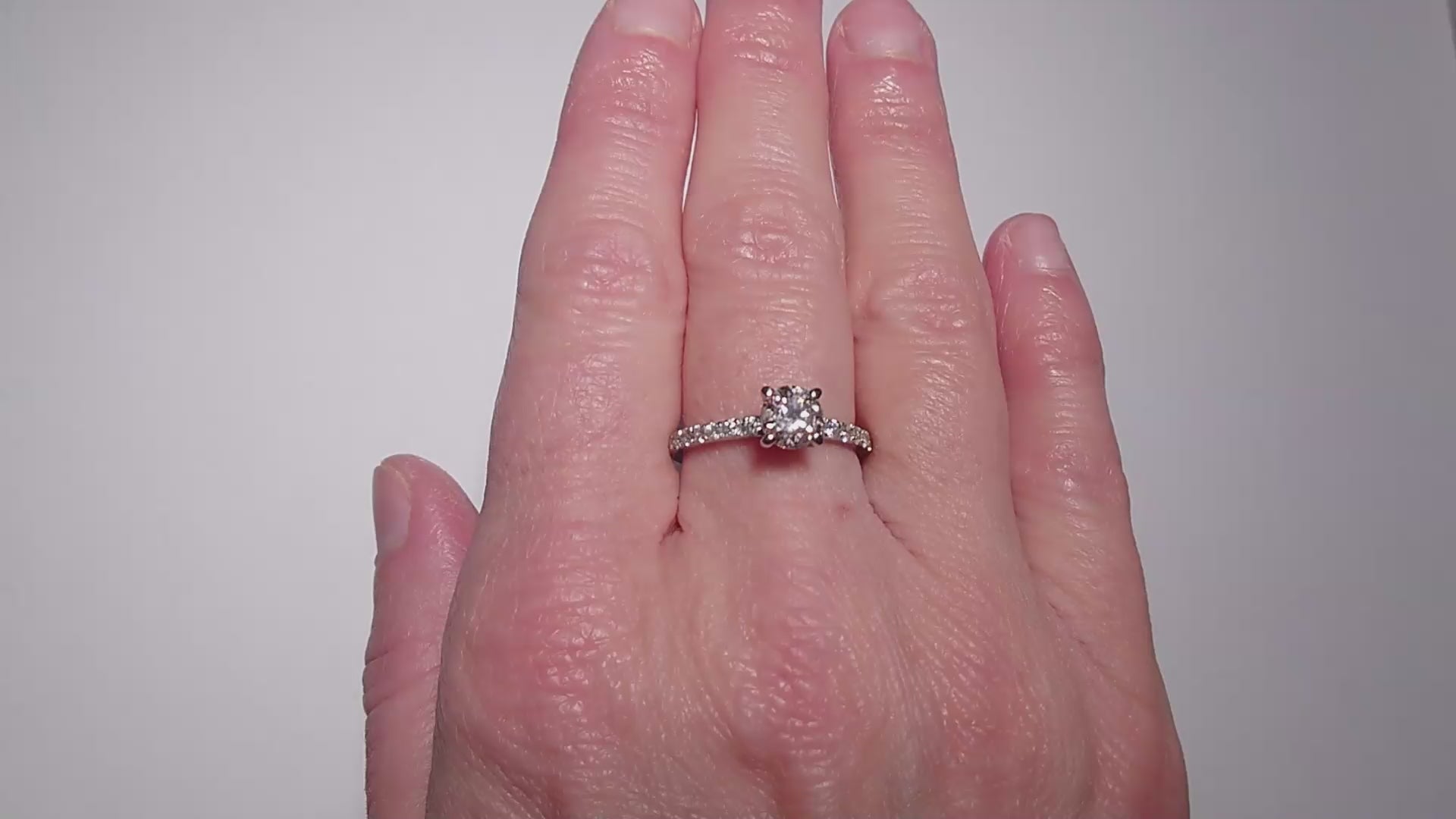 A stunning 14-carat white gold* solitaire ring featuring a brilliant-cut white diamond.