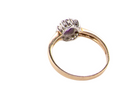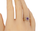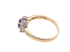 A traditional cluster ring containing an oval amethyst centre stone 5x4mm, four claw setting, surrounded by ten brilliant cut white diamonds 2.2mm each, colour I-j, clarity Si.