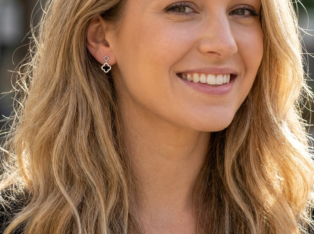 A refined and timeless pair of brand-new 9 carat white gold drop earrings, crafted in the elegant Alhambra style.