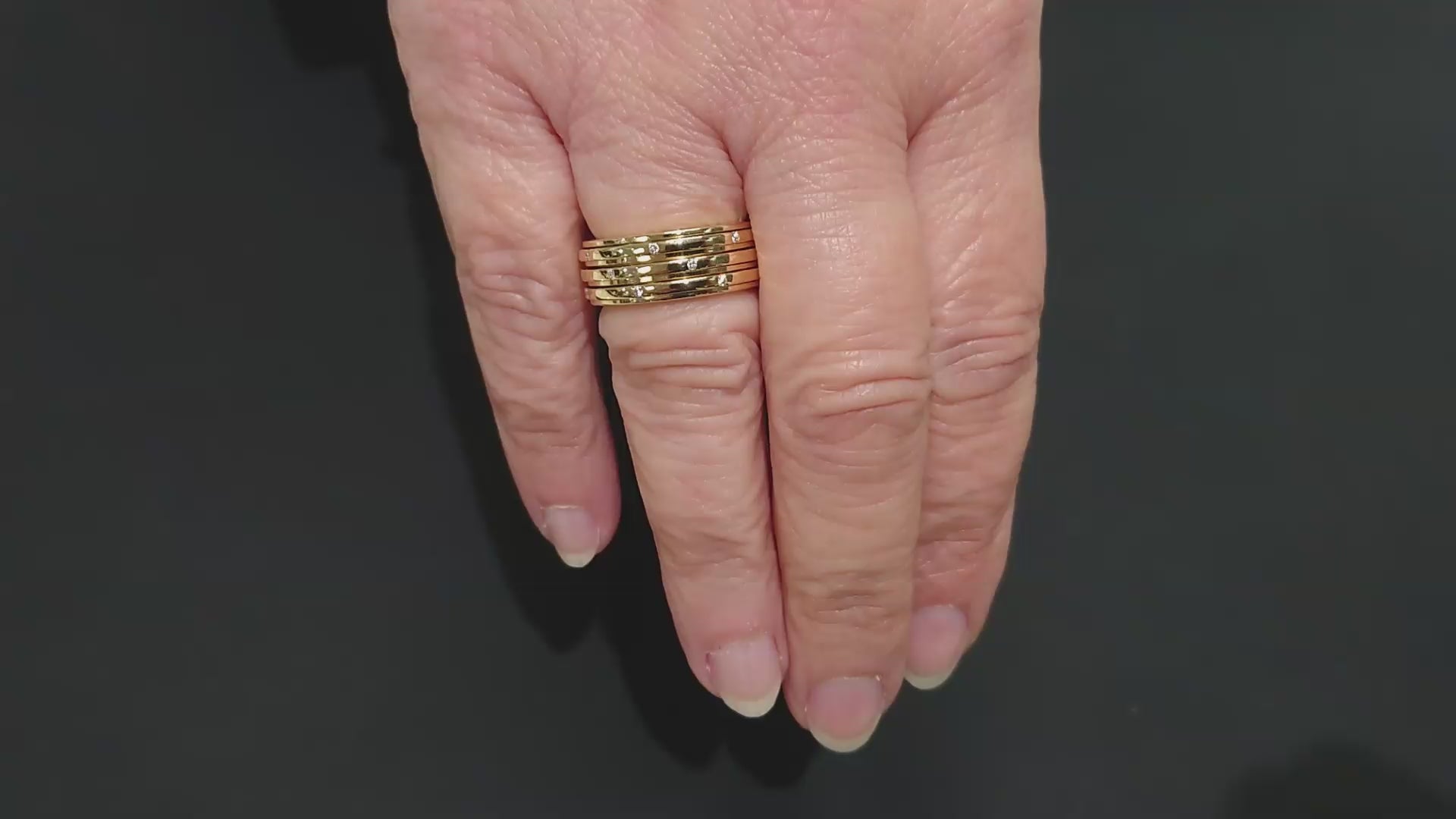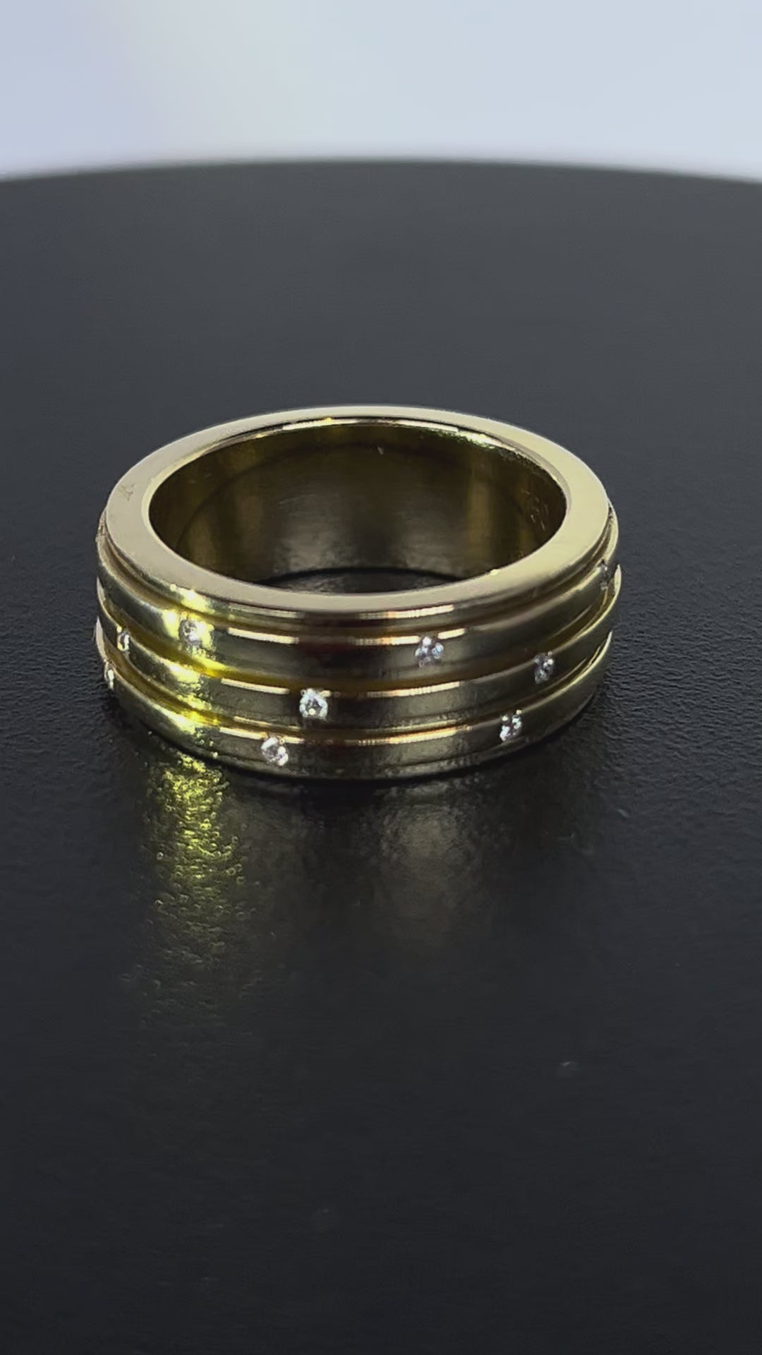 An elegant and sought-after creation from Piaget’s iconic Possession collection. Crafted in rich 18-carat yellow gold, this sophisticated ring features three rotating bands — a signature Piaget design —Each band glides smoothly within its outer frame and is punctuated at intervals with brilliant-cut diamonds, offering a subtle sparkle from every angle. The refined proportions, 8mm in width and a substantial 13g in weight, deliver a luxurious presence on the hand while remaining effortlessly wearable.