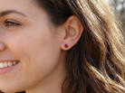 A pair of vintage stud earrings. Each one is set with a round garnet, 8mm diameter. Deep red colour, claw set head.