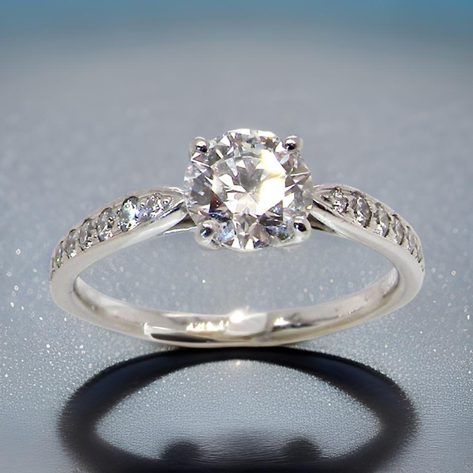 We bring you a ring from that famous company and can be viewed on their website under the Harmony (registered brand) Range. You can see a very similar ring to this with a diamond of 0.75 carats for a retail price of £9,450.00