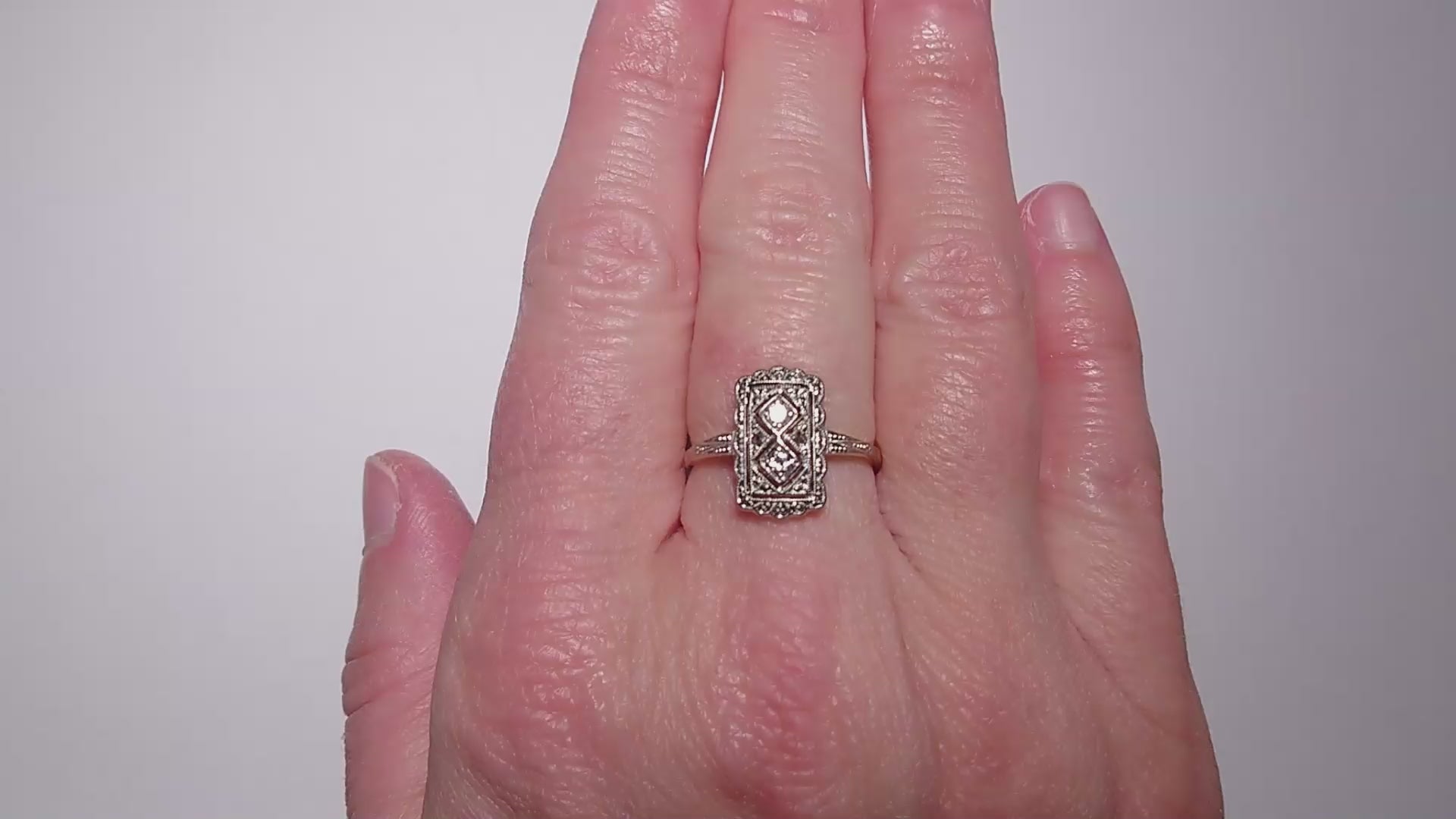A beautiful Edwardian era plaque-style diamond cluster ring, featuring a refined rectangular head measuring approximately 12 × 8 mm and crafted in platinum.